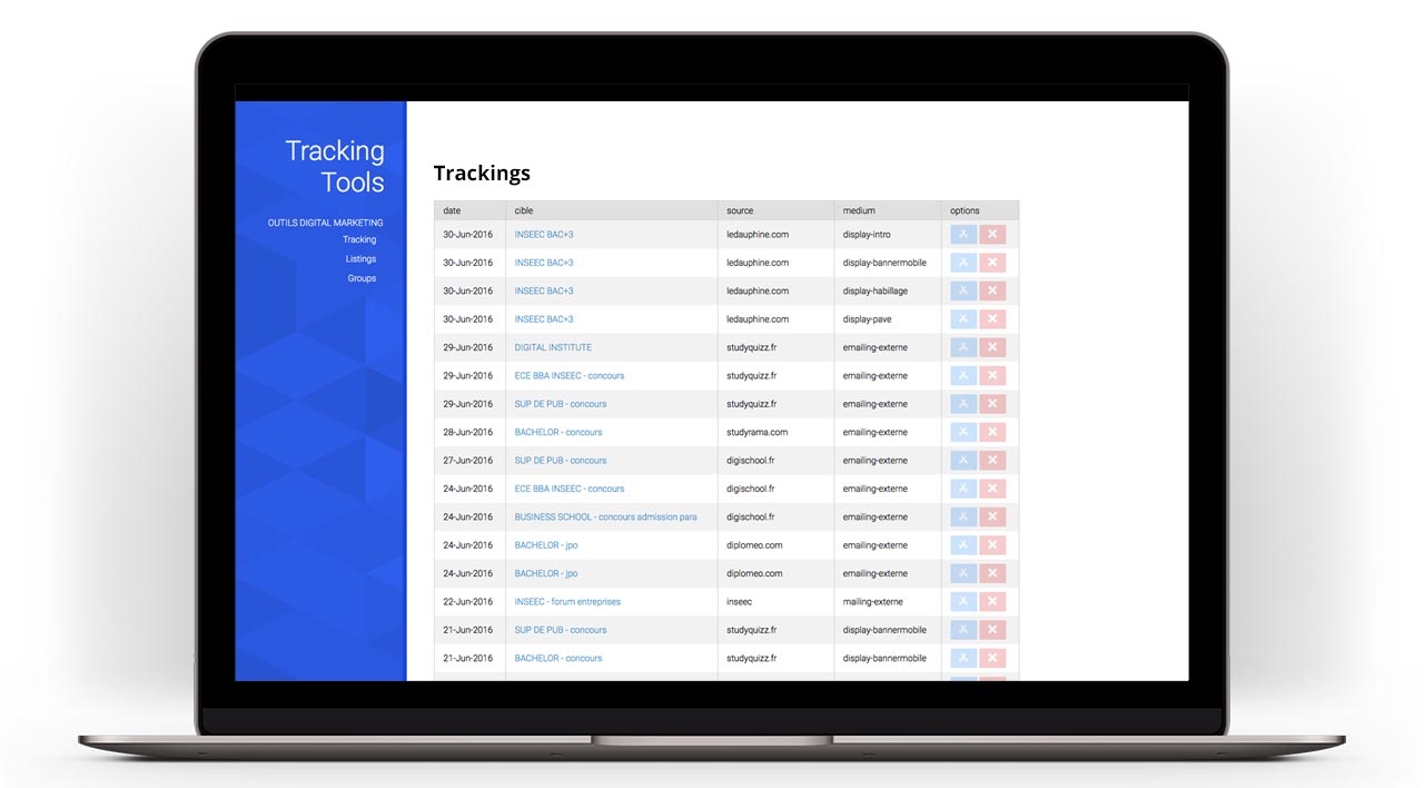 Envoyé aux prestataires pour les campagnes marketing digital du groupe INSEEC, la création de liens de tracking représente une tache répétitive.